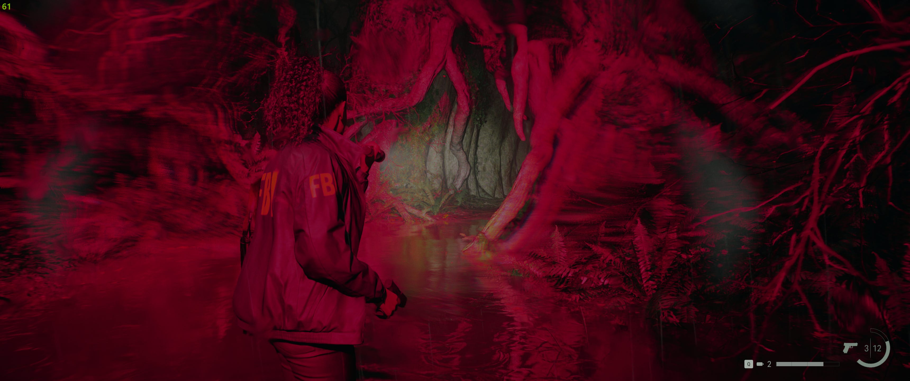 There are dozens of places I could start this review, but let’s eat our dessert first. Alan Wake II is gorgeous. It’s a feast for the eyes. I recently built a PC after exclusively console gaming for over a decade, and this was the perfect game to justify the purchase. The textures and coloring of the people and environment do an incredible amount of heavy lifting in immersing the player in the game. Everything looks detailed and moody, almost as if you’re consuming the video game equivalent of an HBO show. The notoriously bad plastic hair texture that single-handedly breaks immersion in most AAA games is nowhere to be found, and instead, you get incredibly believable character models that closely resemble their live-action counterparts.