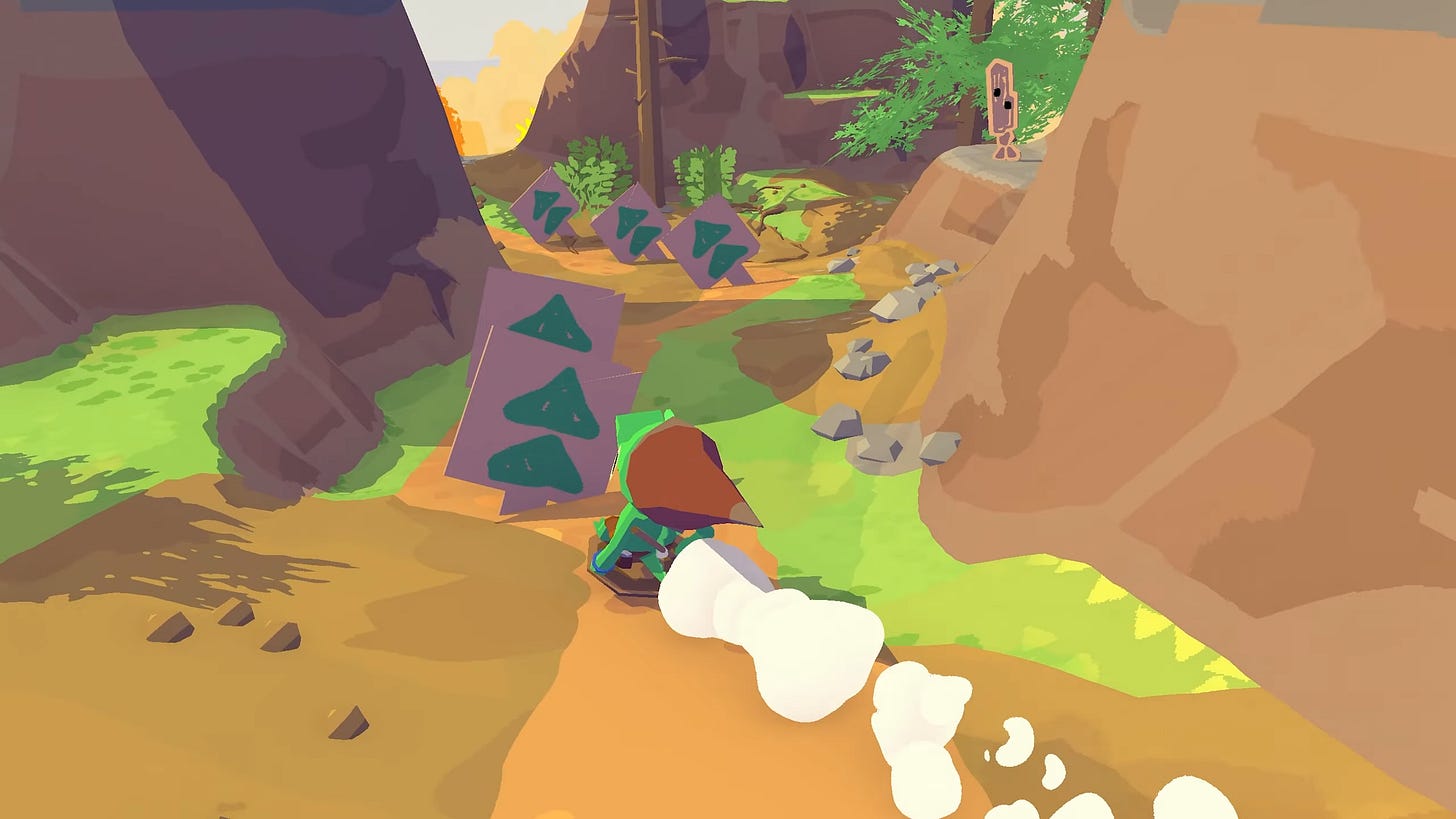 That being said, I did have some minor critiques of the game. The map for the game is much larger than expected, especially when you’re just a Lil Gator wandering around an island. I really wish we had access to a map. I found myself getting lost a few more times than I would like the admit, and although they have little park-style map boards, I really would have just liked to open a menu to get my bearings. That kind of extends to the quests as well. Most of the quests were pretty straightforward, but some that asked me to find certain items had me feeling stuck. The game tries to give you guidance on where to look for things, but in a handful of instances, I either accidentally found the item or never found it at all. My last criticism is that the game map sometimes feels like busy work. You’re cutting down what seems like a limitless amount of cardboard enemies to get current and complete quests, and while it was mostly fine, I would have loved to see some other ways to earn currency out in the world.